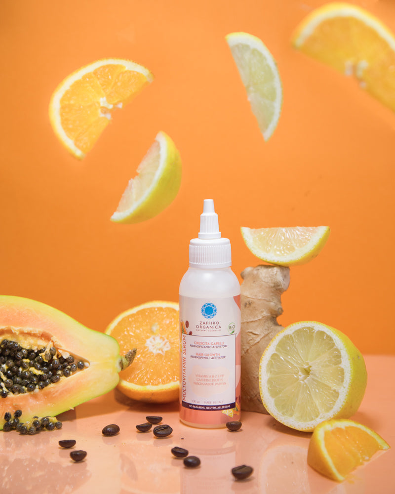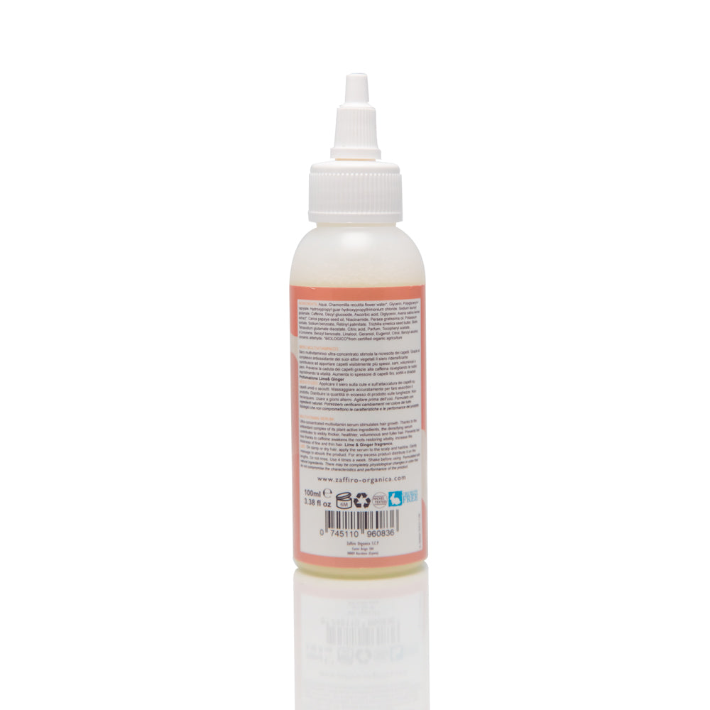 El suero bio multivitamínico ultraconcentrado estimula el rebrote del cabello. Gracias al complejo antioxidante de sus ingredientes activos vegetales como las vitaminas A, B, C, E, H, PP, Cafeína, Biotina, Niacinamida y Papaya, el suero redensificante contribuye a un cabello visiblemente más grueso, saludable, voluminoso y lleno. Previene la caída del cabello. Gracias a la cafeína despierta las raíces al volver a contener la vitalidad. Aumenta el grosor del cabello fino, obteniendo un aspecto saludable y voluminoso. Fragancia Lime+ Ginger